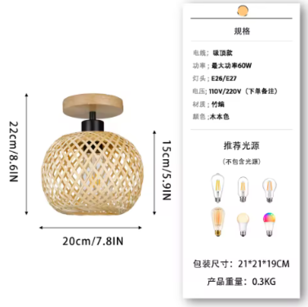 - مصباح خيزران يوفر إضاءة دافئة ومريحة للعين، مثالية للأجواء المريحة والمبهجة.
